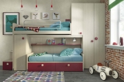 Abbiamo studiato una soluzione ideale per avere due letti comodi e una buona armadiatura in un’unica parete, grazie al meccanismo di scorrimento, alle armadiature presenti nel castelponte e al letto attrezzato con cassettoni.